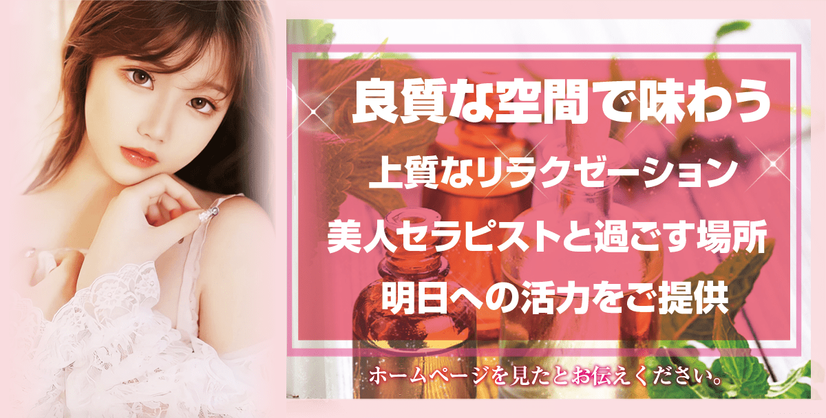 日頃から頑張っているメンズに駅から好立地にある個室のプライベート店で楽しい時間を過ごしてみませんか? 厳選されたセラピストが貴方様の体調・お好みに応じてアロマオイルをブレンドし、最高級の癒しマッサージをさせていただきます。個室の空間で全てを忘れ、セラピストのリズムに身を任せ、‘貴方自身‘を取り戻してください。ご来店を心よりお待ち申し上げます。